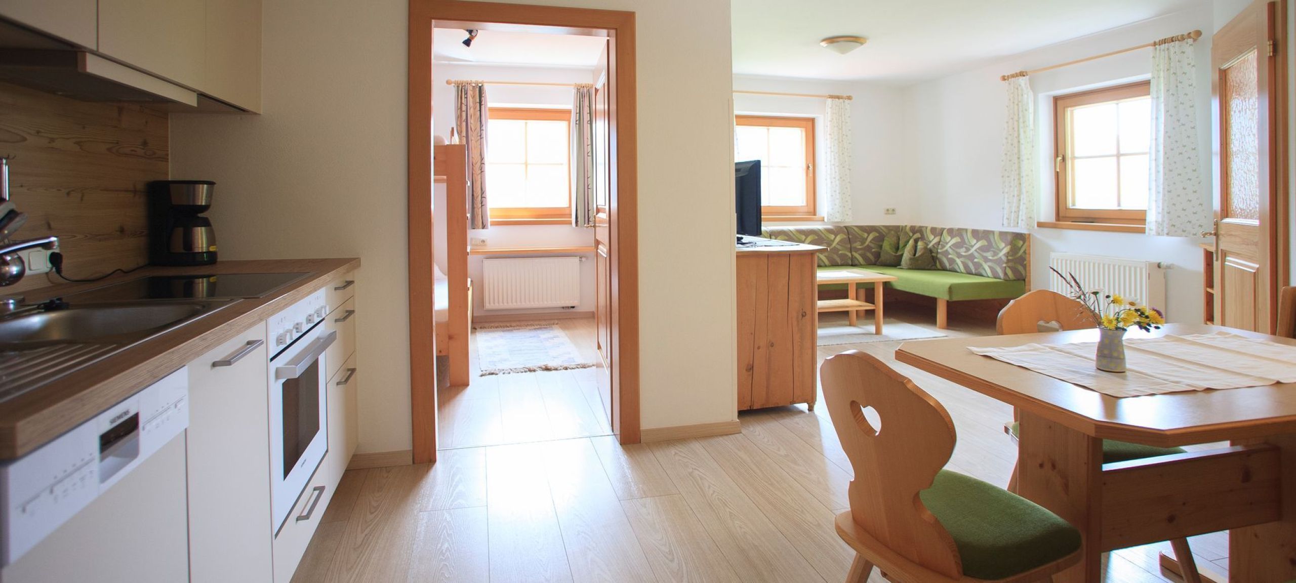 Erleben Sie die mit viel Liebe eingerichteten 2 Schlafzimmer mit Vollholzmöbel und der Wohnküche mit Eßecke und Wohnecke, Dusche und WC. Atmen Sie auf dem Balkon die würzige Bergluft ein. Natürlich sind die Ferienwohnungen mit allen bodenständigen Komfort ausgestattet.
